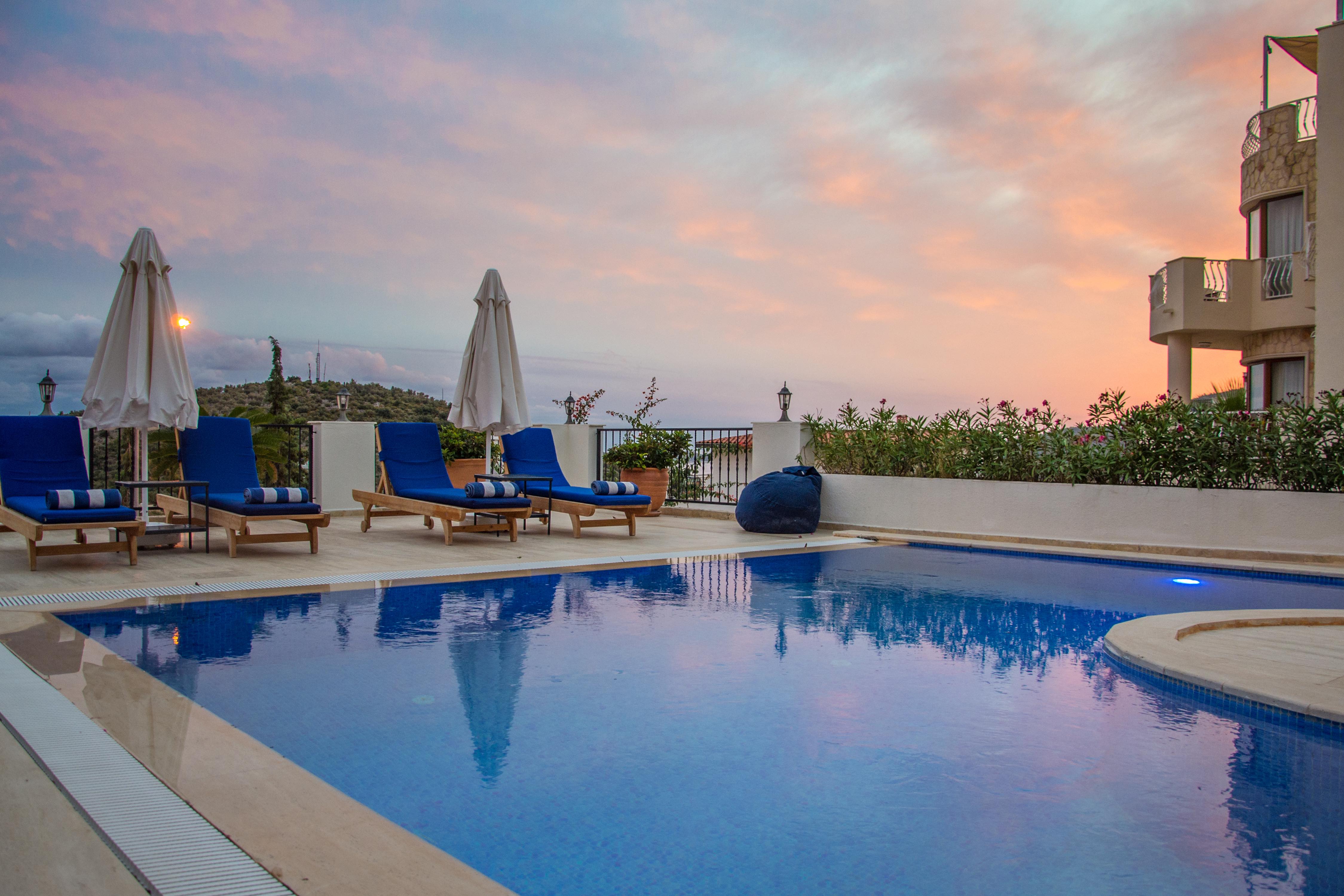 Your private swimming pool, surrounded by comfy sun loungers