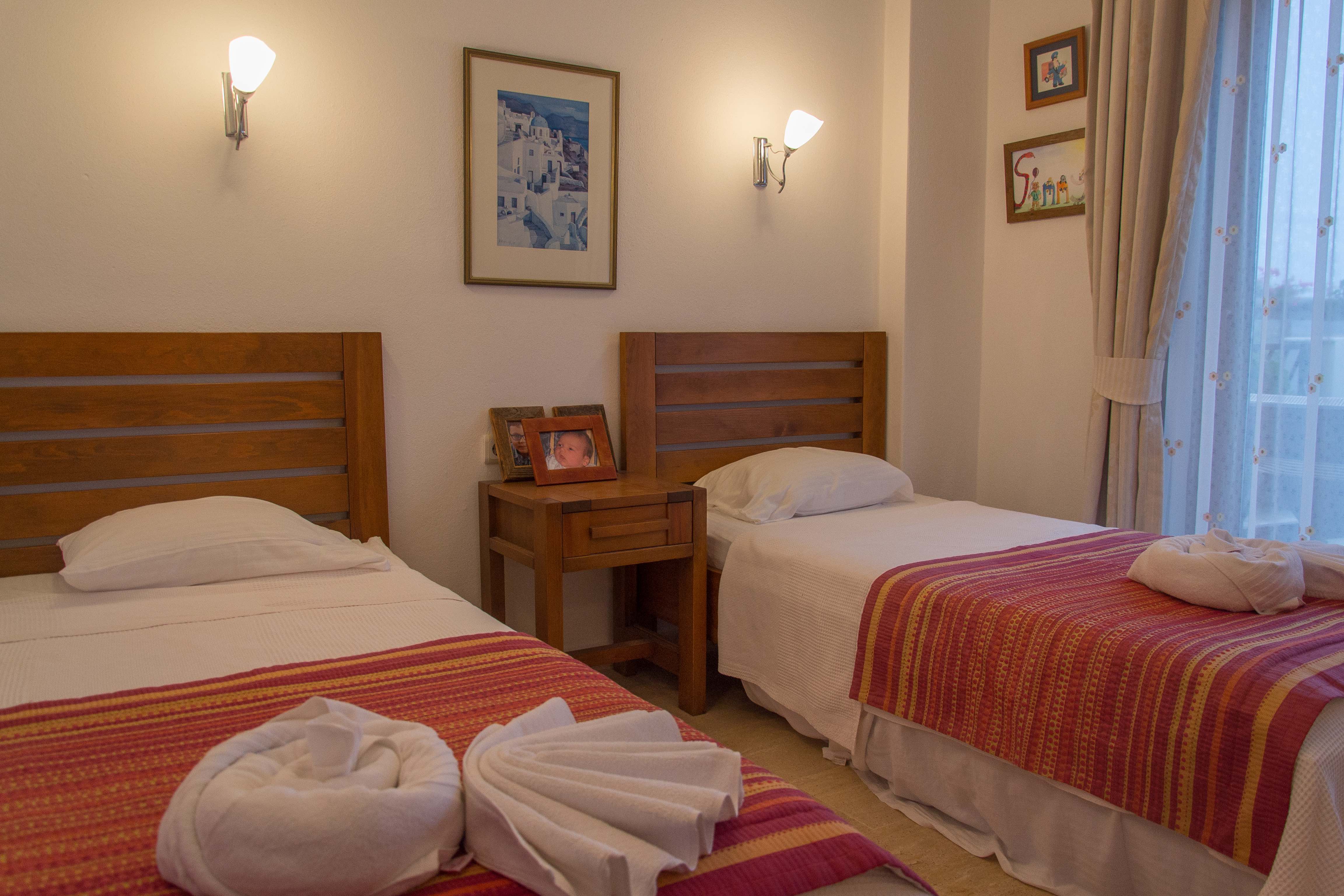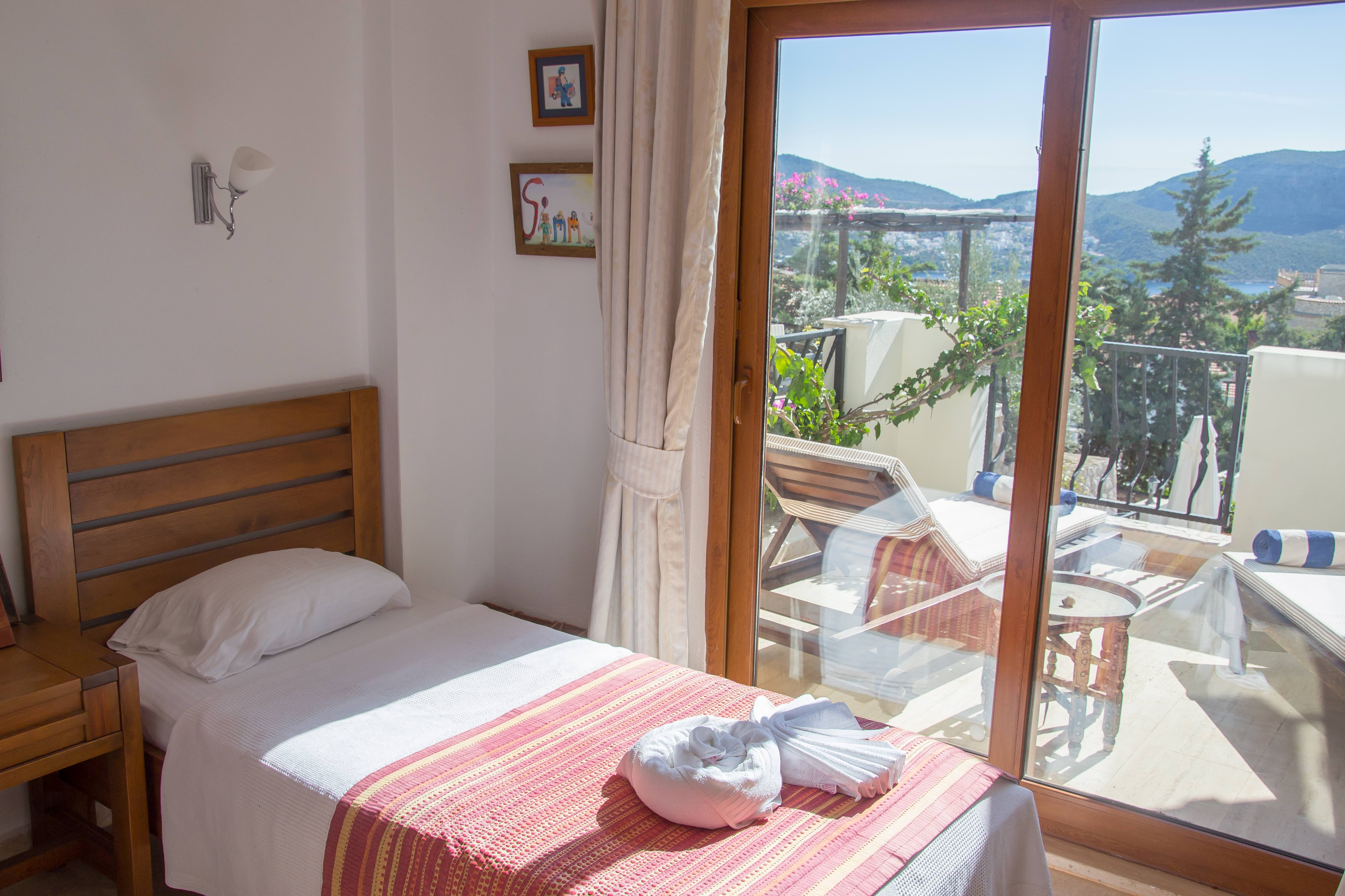 Glass doors from the twin room lead out onto a large balcony