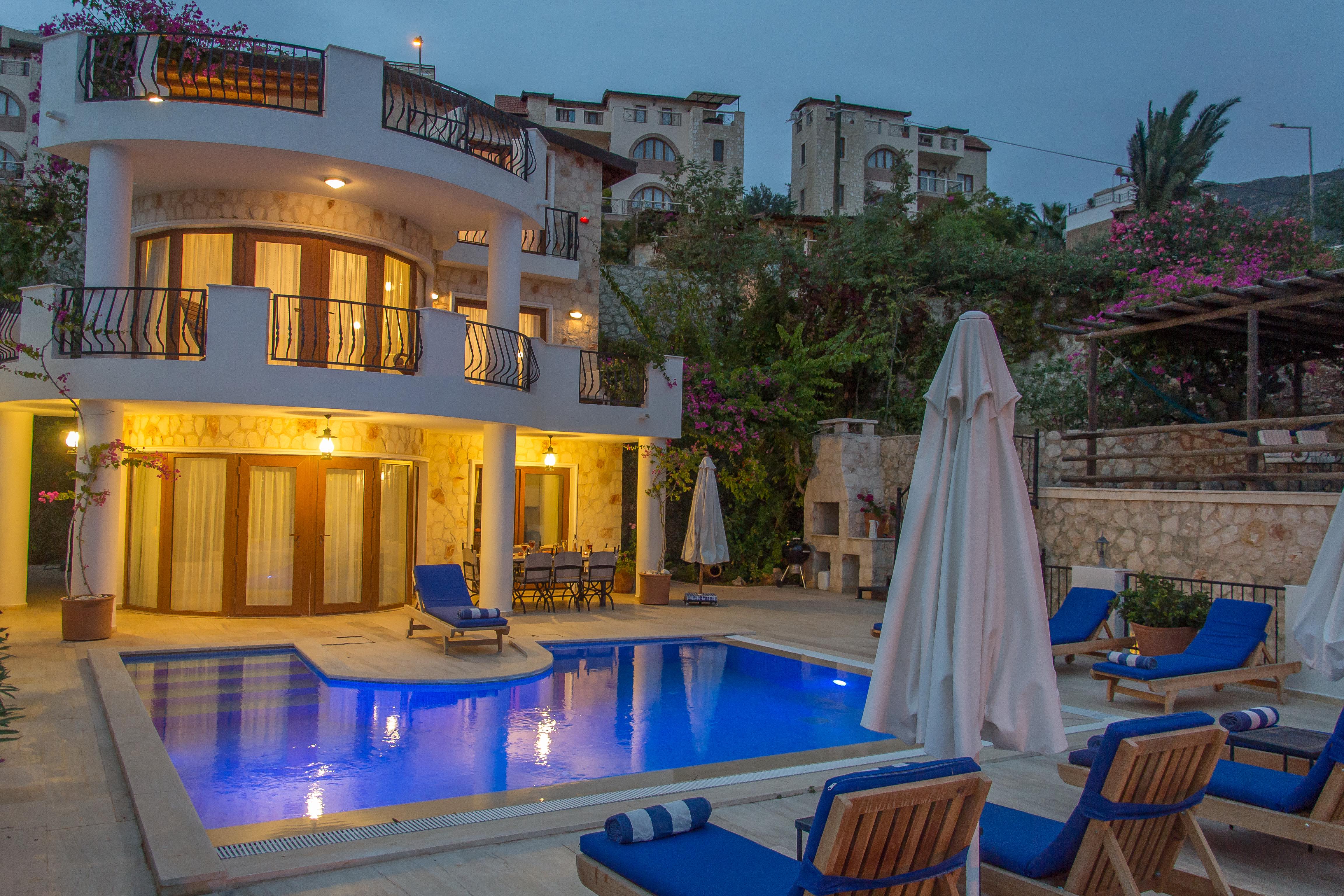Villa Fosa and its pool in the evening